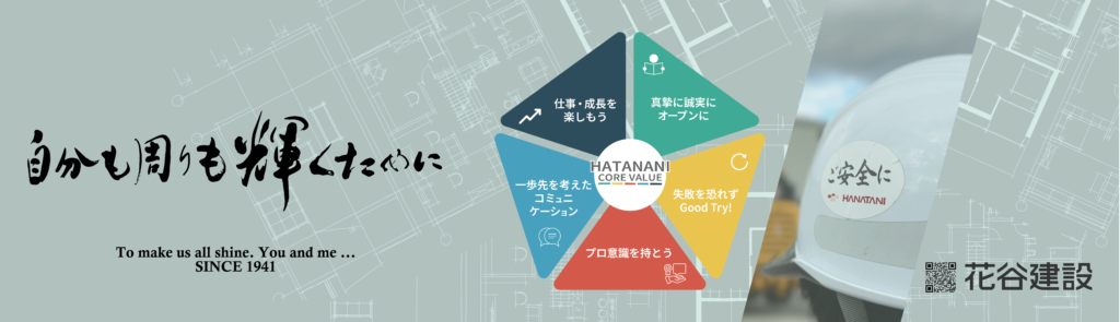 当社では、協力会社様と一体となり、お客様にモノ創りを通じて届ける想いや、社の取組みをご理解いただけるように毎年、作業所、本社に看板デザインを替え、想いを表しています。