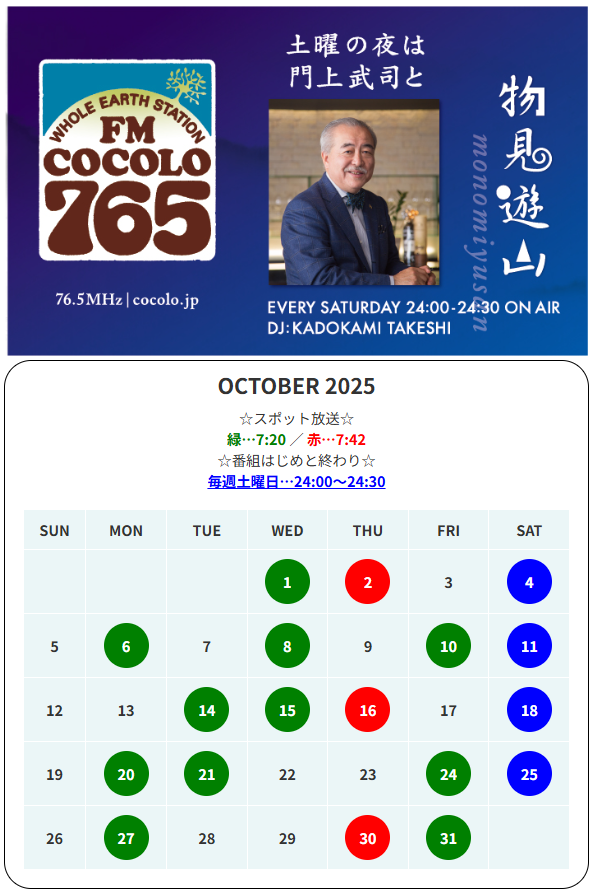弊社のラジオCM、10月の放送日時は以下の通りです。