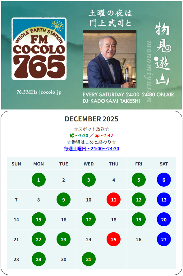 弊社のラジオCM、12月の放送日時は以下の通りです。