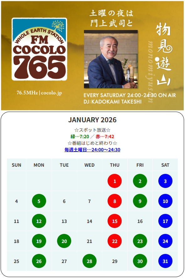 弊社のラジオCM、1月の放送日時は以下の通りです。
