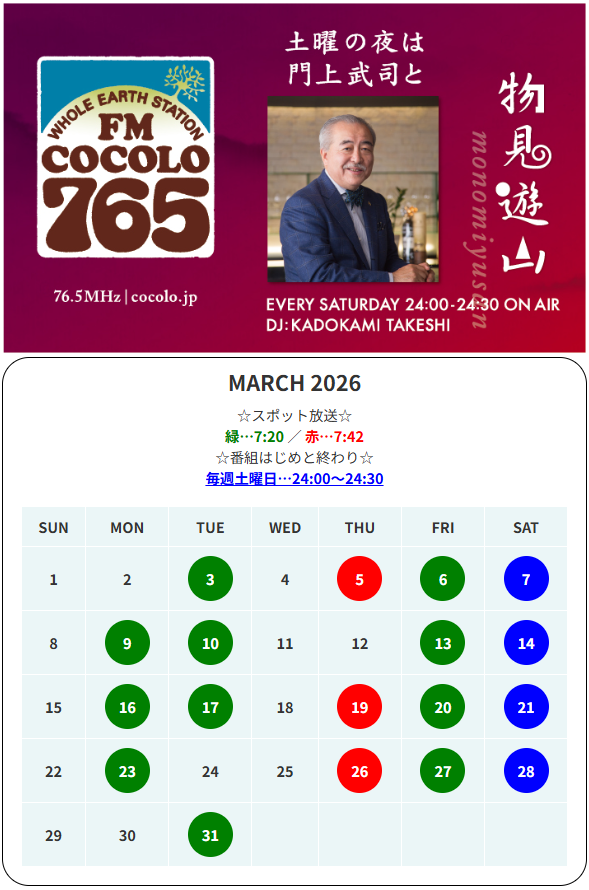 弊社のラジオCM、3月の放送日時は以下の通りです。
