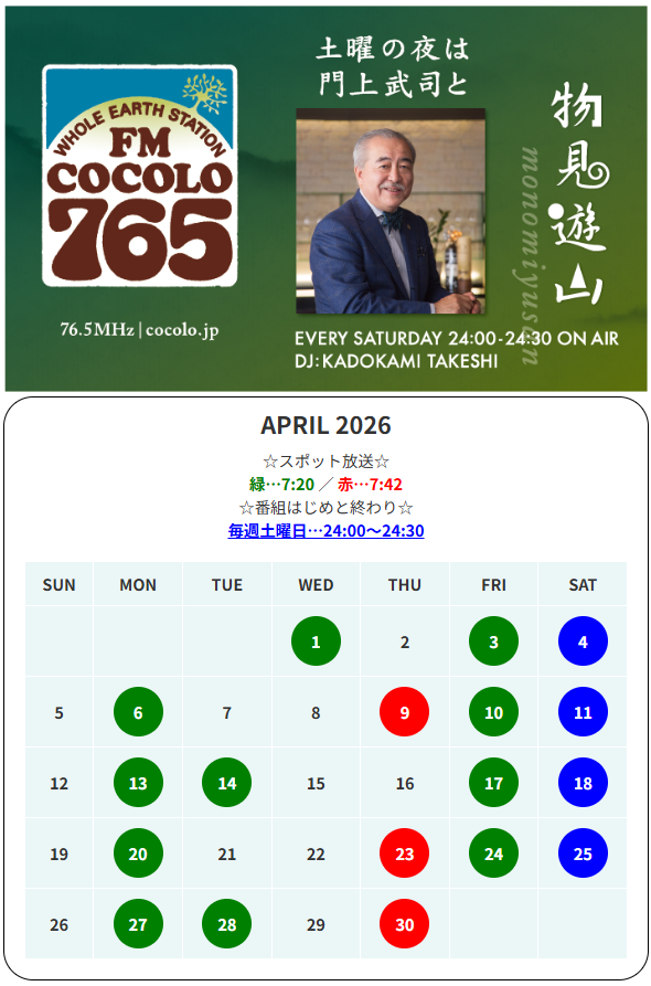 弊社のラジオCM、4月の放送日時は以下の通りです。